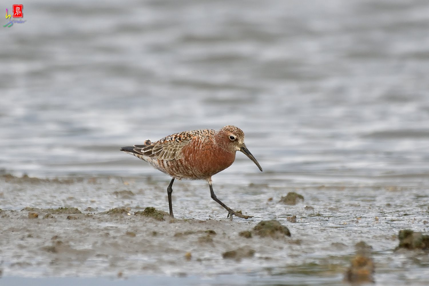 彎嘴濱鷸夏羽紅得非常誇張,但