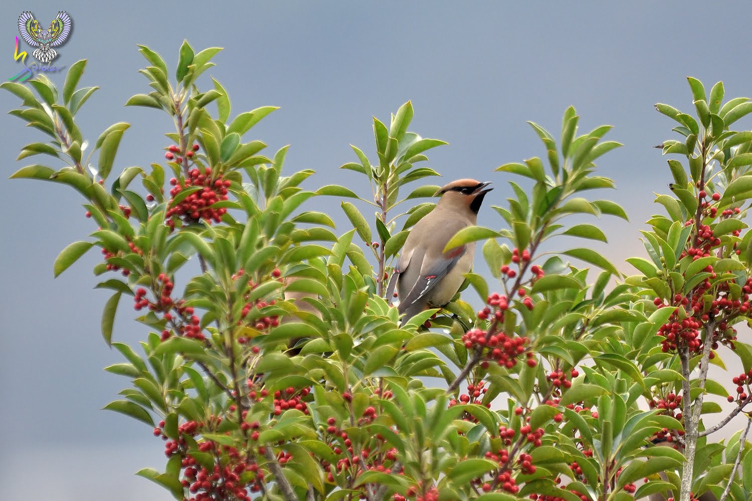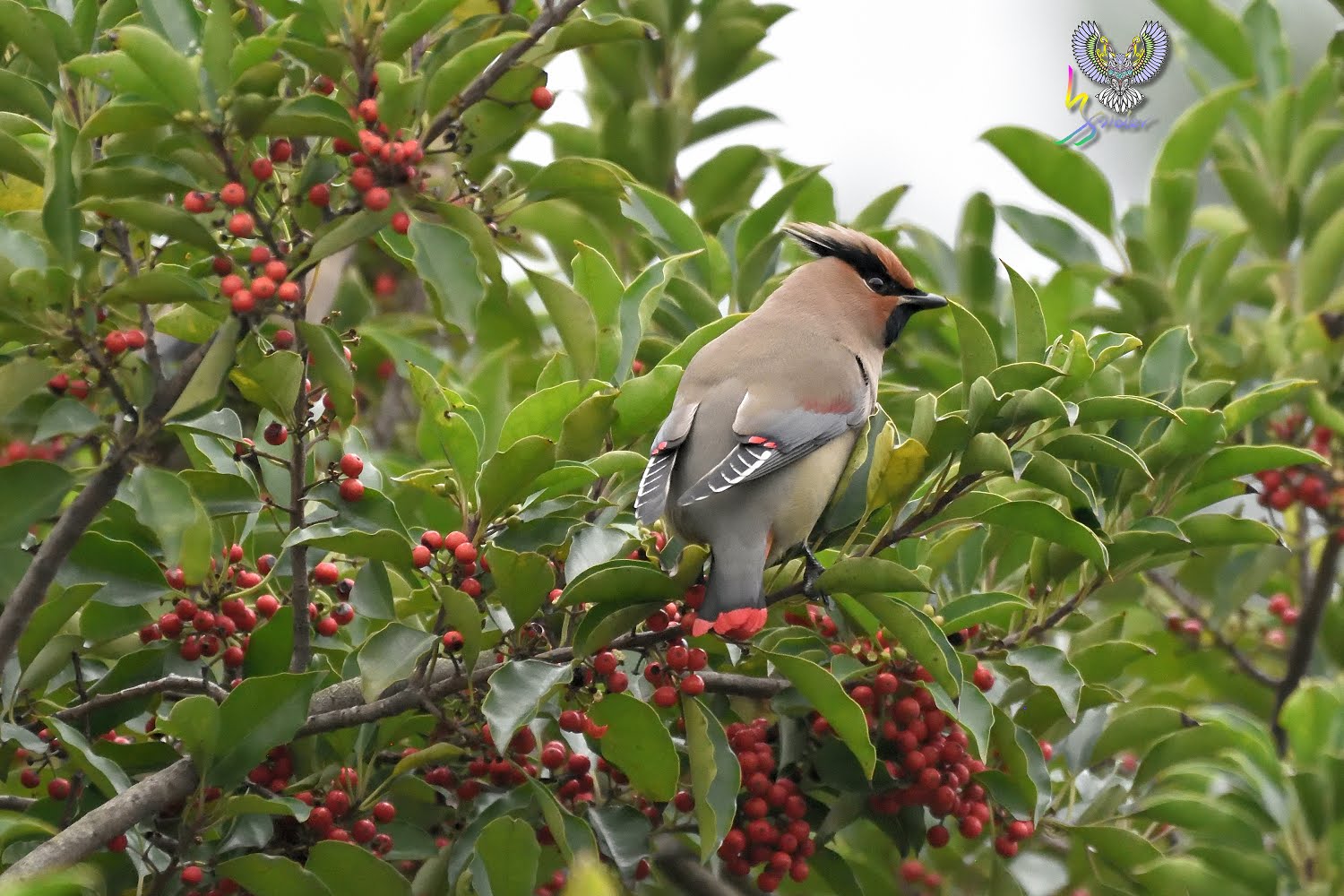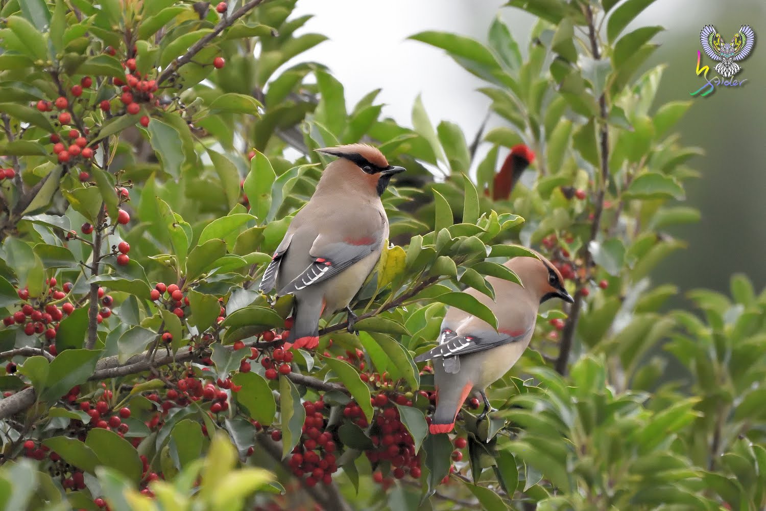 朱連雀尾羽末端為横條紅,故有十二紅的別名(12片尾羽),在台灣為稀有的過境鳥,因有群體活動的習性,被發現的機率相對較高,喜食肉質性果實(例如雀榕、鐵冬青等),停留期間時會固定在這些植物覓食,所以發現後能夠拍攝好幾天,2020年是朱連雀的爆發,金山青年活動中心、台中都會公園、小雪山資訊站、武陵農場及這次拍攝地樹林區鹿角溪人工濕地均有發現,樹林離三峽很近,就抽空去紀錄一下。【台灣較常見朱連雀,但偶有黃連雀(就是尾羽末端為黃色,台灣出現機率更低)混群,黃連雀又名「太平鳥」,因而朱連雀也有「小太平鳥」之稱。】