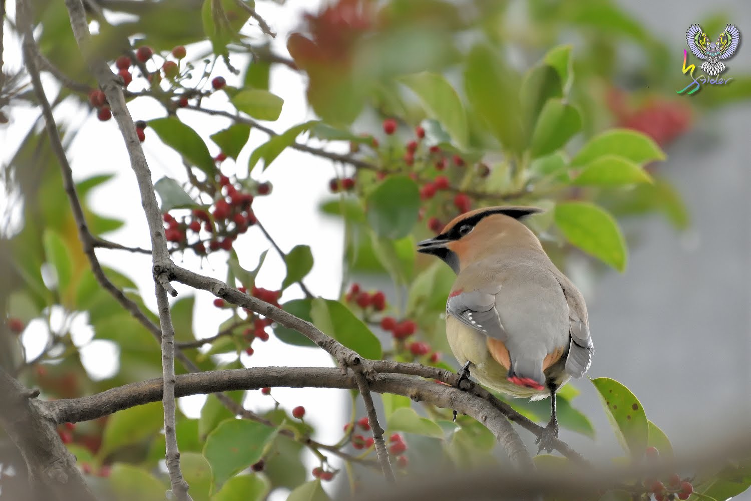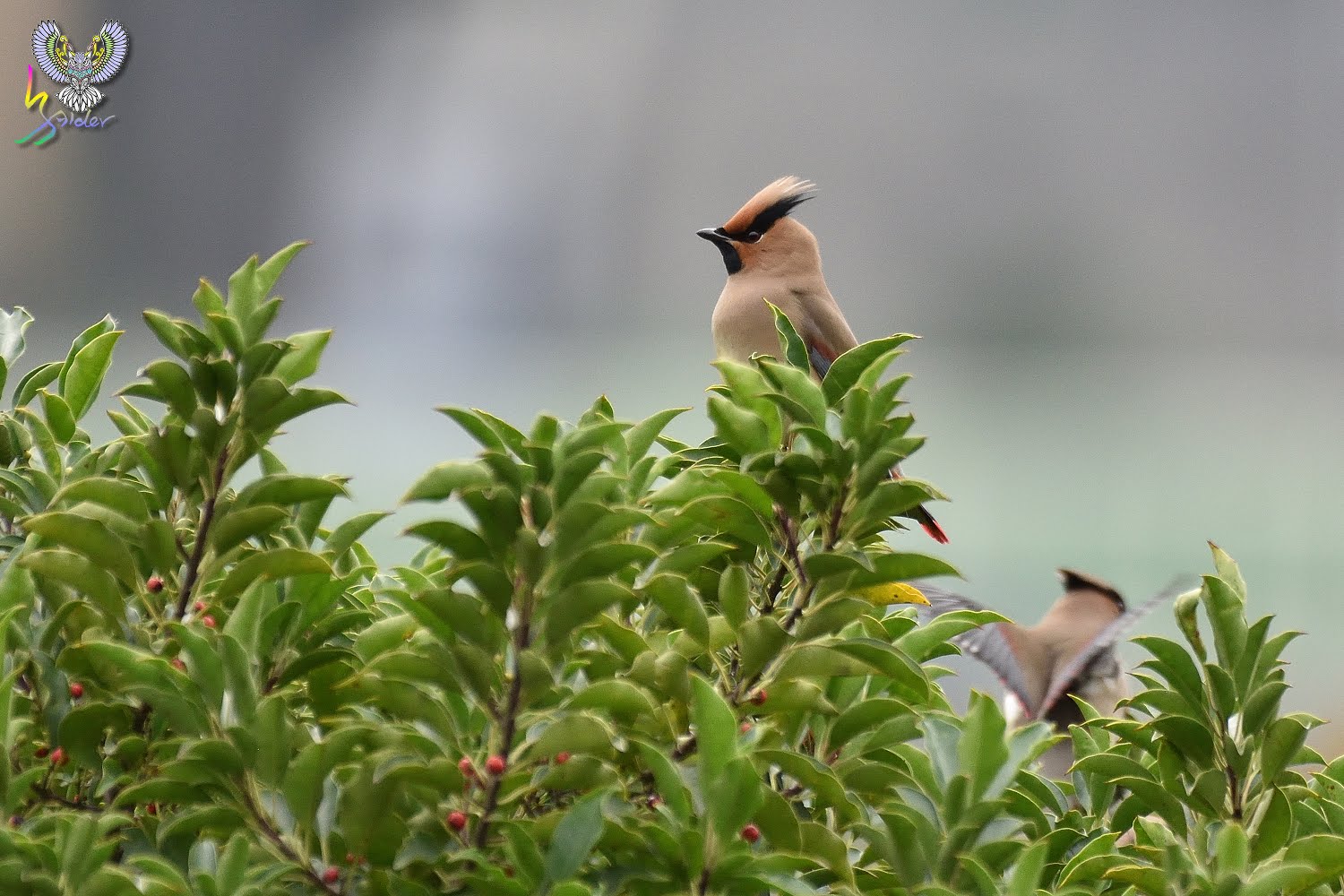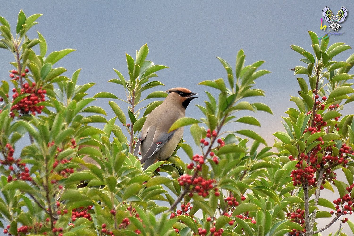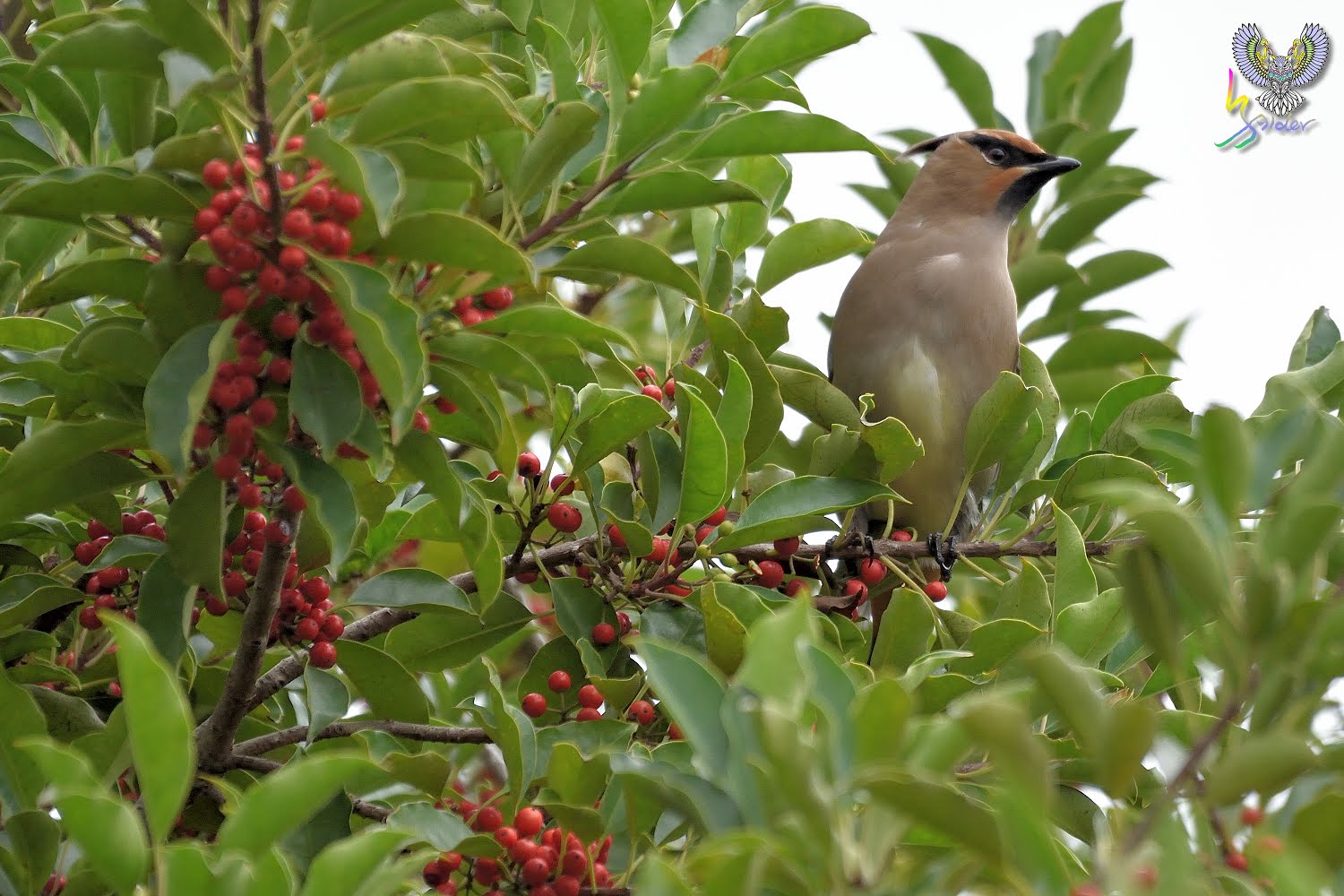 朱連雀尾羽末端為横條紅,故有十二紅的別名(12片尾羽),在台灣為稀有的過境鳥,因有群體活動的習性,被發現的機率相對較高,喜食肉質性果實(例如雀榕、鐵冬青等),停留期間時會固定在這些植物覓食,所以發現後能夠拍攝好幾天,2020年是朱連雀的爆發,金山青年活動中心、台中都會公園、小雪山資訊站、武陵農場及這次拍攝地樹林區鹿角溪人工濕地均有發現,樹林離三峽很近,就抽空去紀錄一下。【台灣較常見朱連雀,但偶有黃連雀(就是尾羽末端為黃色,台灣出現機率更低)混群,黃連雀又名「太平鳥」,因而朱連雀也有「小太平鳥」之稱。】