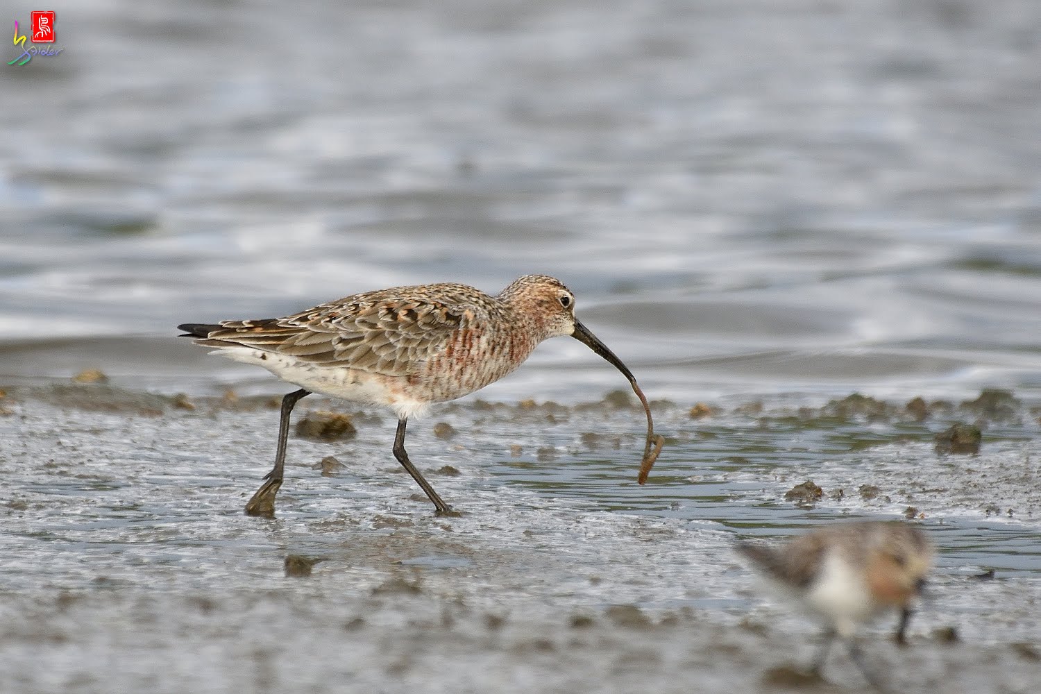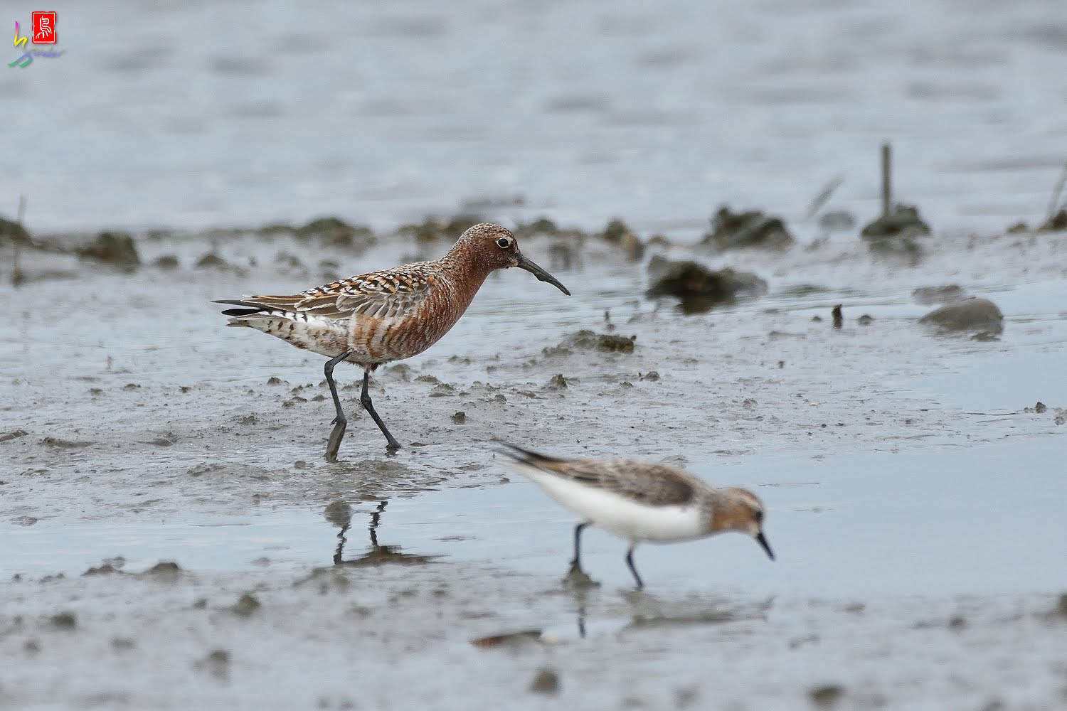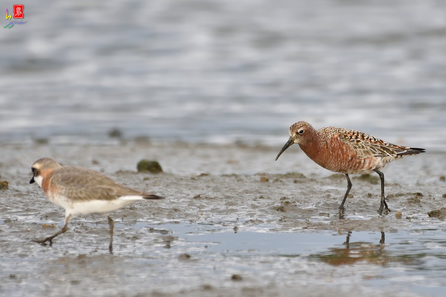 彎嘴濱鷸夏羽紅得非常誇張,但冬羽卻相當樸素,與黑腹濱鷸較為相似,彎嘴的嘴喙長而均勻下彎,黑腹濱鷸則在先端才微下彎,彎嘴在台灣多為過境性質,因為冬羽羽色不易辨識,大多於春過境時才會被發現.去年在大園李厝田區春過境時也有拍到(與尖尾鷸混群),彎嘴濱鷸又名滸鷸(讀音「虎玉」).學名:Calidris ferruginea。