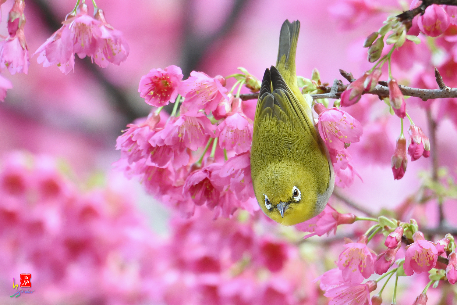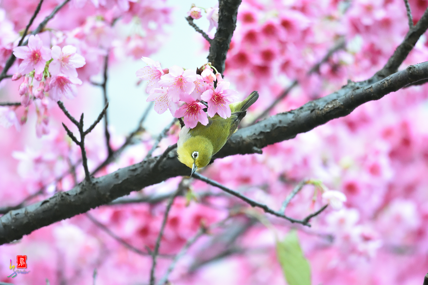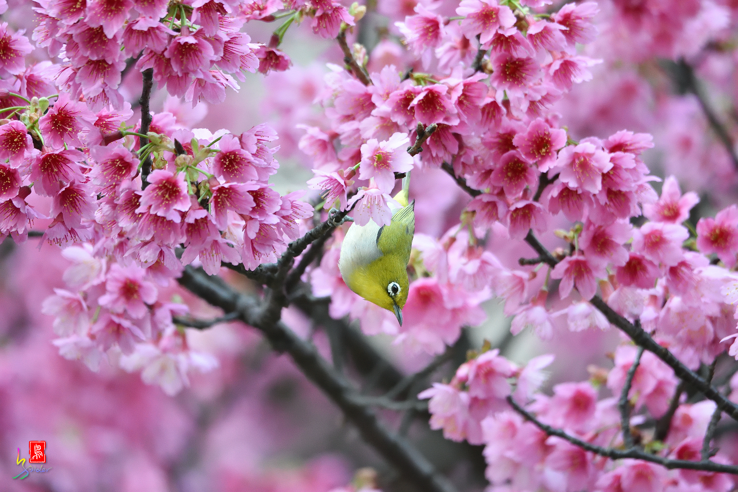 自從搬離台北市生活圈,就找不到適合拍櫻花鳥圖的場域,還在三峽山區找點拍,效果極不佳,昨日看社區外山櫻微開就有小綠造訪,拿了相機拍拍,一位老大姊看到我在拍,就告知隔2個社區有一株櫻花開得很漂亮,很多人在拍,就過去看看,天哪,就是我想找開得盛大又漂亮的「寒櫻」,只有一株,其他數棵都是山櫻花(緋寒櫻),小綠造訪頻率極高(因為寒櫻極盛漸衰,小綠大多停留在山櫻樹上),只可惜因為櫻花種植位置在大樓建築旁,陽光被遮住光線不夠明亮,沒能拍到滿意的畫面,下午再度造訪,發現花況已稍漸稀疏,次日再訪,地上落英繽紛,花期將盡,想要拍攝好畫面就只能留待明年了,不過接下來還是有山櫻小綠接續,應該還能拍到農曆年假期的。