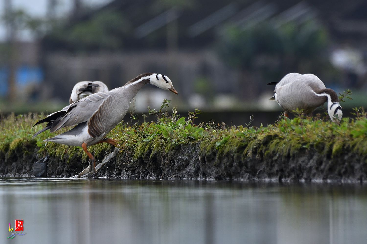 屬於體形較小的雁類,雄雌冏羽,很難區分,頭部污白色,頭頂上有兩條黑色條帶,一條略成馬蹄形,位於頭頂的後部,連結雙眼的後部,另外一條橫貫枕部,這也是牠斑頭的名稱來源。台灣不在牠們的遷徒路線,以往也未有斑頭雁來台的紀錄,算是十分難得的一種迷鳥,穩定停留在壯圍特定田區,田主也為了牠們延後春耕的時間,讓牠們得以多留一些時間,學名:Anser indicus。